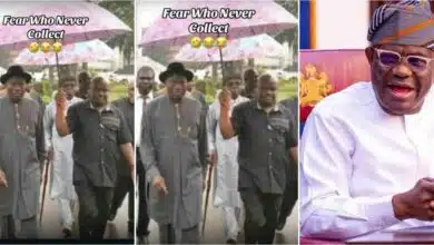 A throwback photo of Nyesom Wike, the current Minister of the Federal Capital Territory (FCT), holding an umbrella for former…