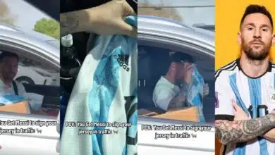 “The true GOAT” – Messi wins hearts online as he stops car mid-traffic, signs jersey thrown at him by an excited fan