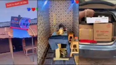 A young fashion designer was almost moved to tears as he receives free equipment from a singer, King Mubarak, after…