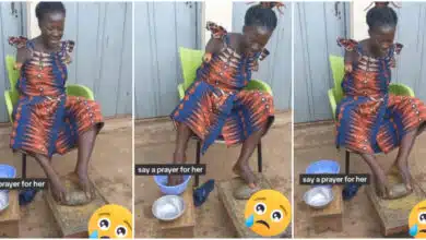 “Forever grateful” – Physically challenged lady stuns many as she uses her legs to grind