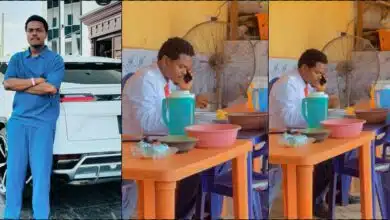 Billionaire businessman, Blord Linus William set tongues wagging as he is seen eating correct yellow garri with a traditional soup…