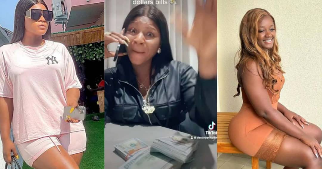 Luchy Donalds replies fan who said Destiny Etiko borrowed the dollar bundles she recently flaunted (Screenshot)
