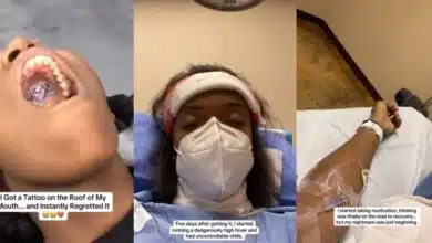 A woman who got a permanent tattoo on the roof of her mouth was rushed to the hospital after developing…