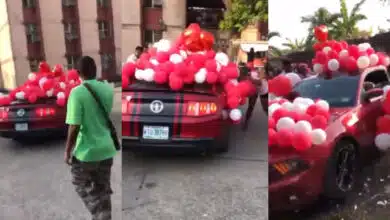 Students storm out as a man brings a Mustang car gift to his girlfriend’s hostel at UNILAG. The man bought…