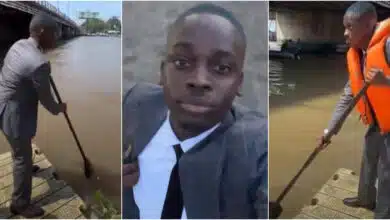 “Cars no dey go there” – Man discloses he rides on boat to new job he got