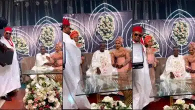 A video of a Nigerian businessman throwing bundles of freshly minted naira notes on a couple on their wedding day…