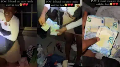 A businesswoman couldn’t contain her excitement after discovering a 100 euro note inside a bale of okirika (secondhand clothes) she…