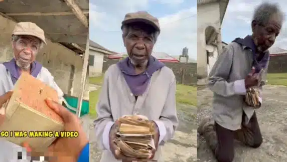 Online video shows the tear-jerking moment a man gives N250K he got via crowdfunding to an elderly piggy bank maker…