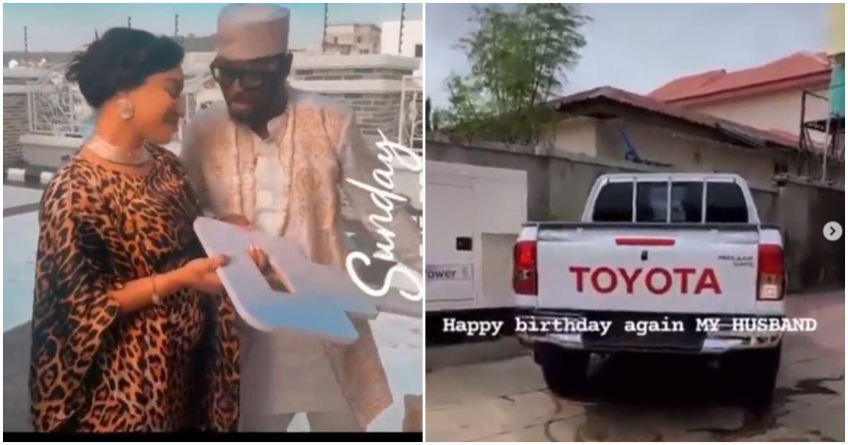 Tonto Dikeh’s husband, Prince Kpokogri finally takes delivery of the birthday truck she gave to him (Video)