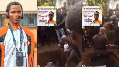Tears and emotions flow as the late sound engineer, Precious Ofurum who passed away in a boat accident is laid…