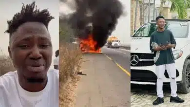 “Help me, my car has burnt” – TikTok influencer, Oloba Salo in tears as multi-million naira car engulfs in flames