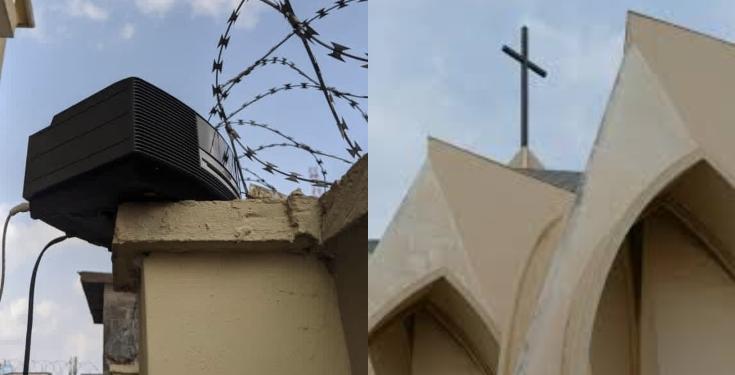 A Twitter user has shared a photo of a sound system a friend placed in the direction of a church…