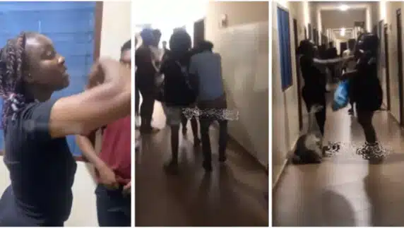 Two young female students were seen fighting at a university in Ghana over a man they were both reportedly dating.…