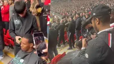 Fan spotted getting haircut inside Wembley during Manchester United vs Brighton match