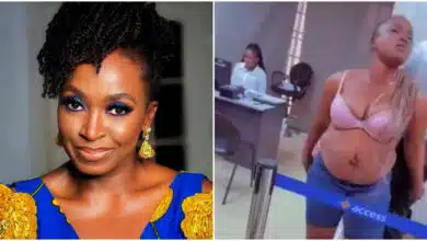 Lady stripes in banking hall, demands all money from account; Kate Henshaw reacts – Video