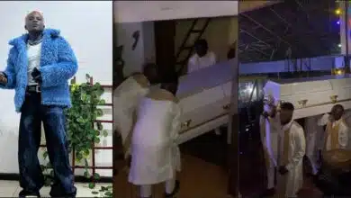 Controversial Afrobeat singer, Portable better known as Ika of Africa, makes a grand entrance at a show in a white…