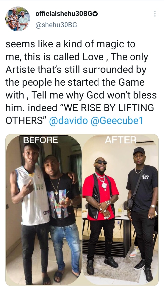 “Tell me why God won’t bless him” – Davido’s aide shares photos of his transformation years after meeting Davido