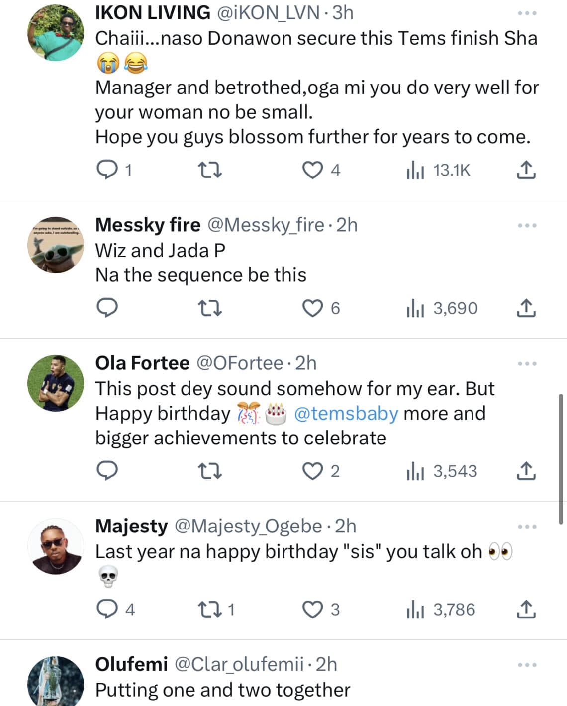 After his birthday message, some social media users reacted to the message and assumed Tems and her manager might be dating.