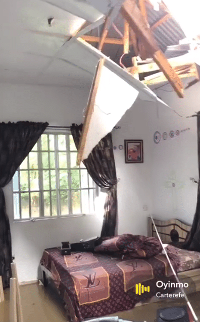 The shocking footage shared by @zion_cuttie depicted the aftermath of the incident, revealing the collapsed water tank within the confines of his bedroom.