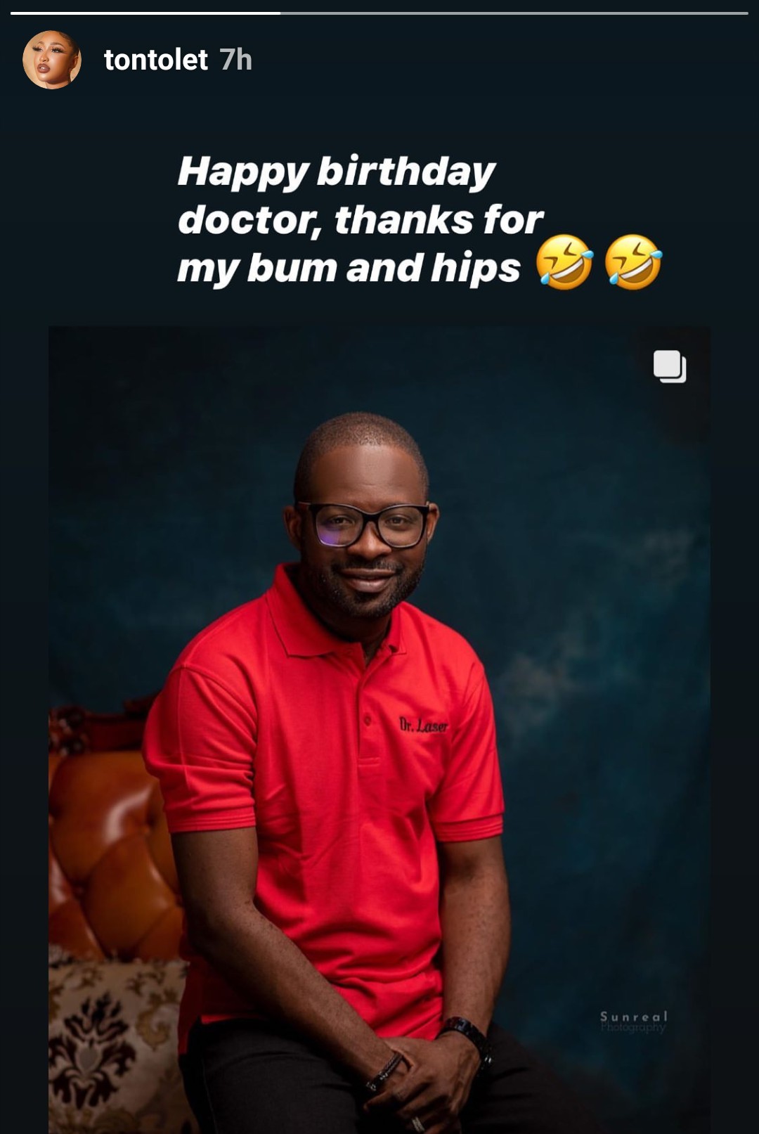 “Thanks for my bum and hips” – Tonto Dikeh appreciates plastic surgeon on his birthday