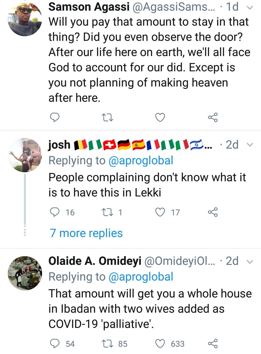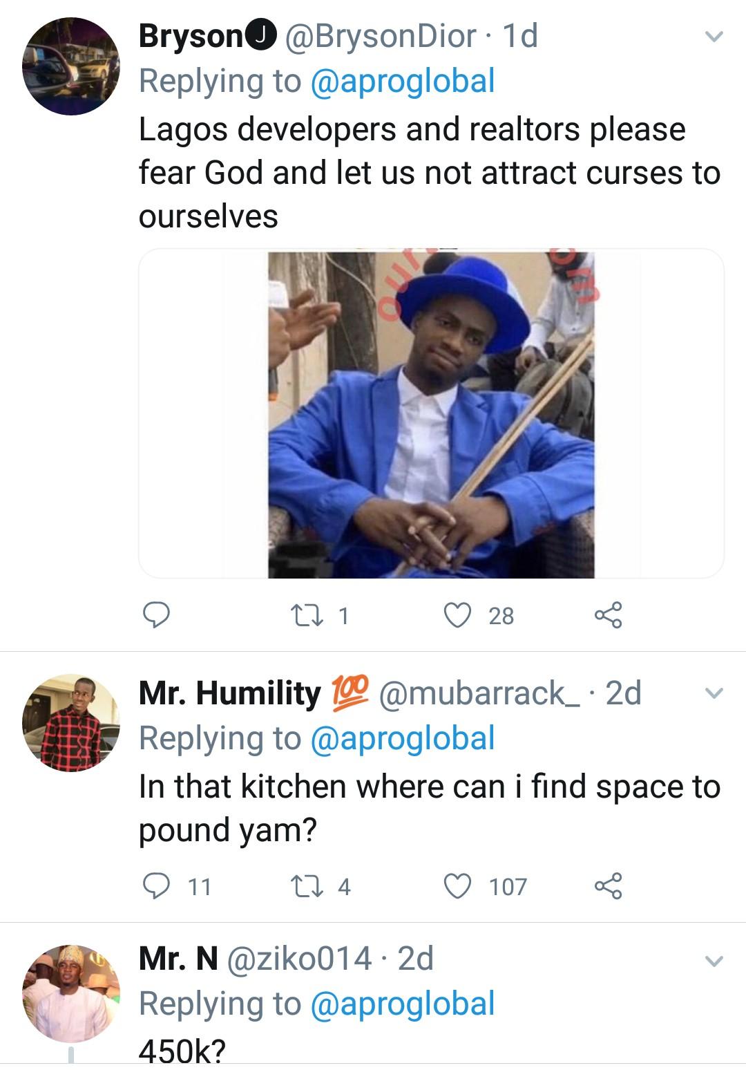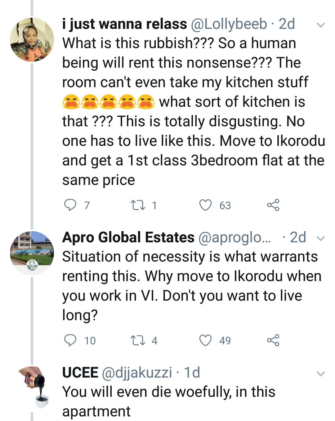 The realtor, while trying to defend himself noted that the apartment is located in Lekki area of Lagos, but Nigerians wouldn’t buy such excuse as they also condemned Lekki for constantly being flooded.