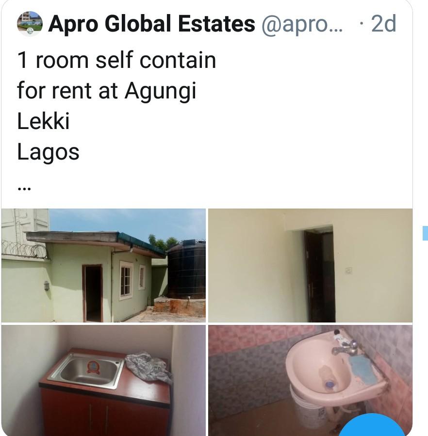 A real estate agent identified as aproglobal on Twitter was recently dragged on the platform after he advertised a ‘self contain’ going for N450,000 per year.