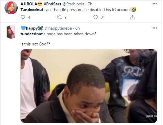Tunde Ednut who is known for throwing jabs at whosoever pleases seems to have been building an empire filled with enemies as social media users rejoiced over the loss of his page.
