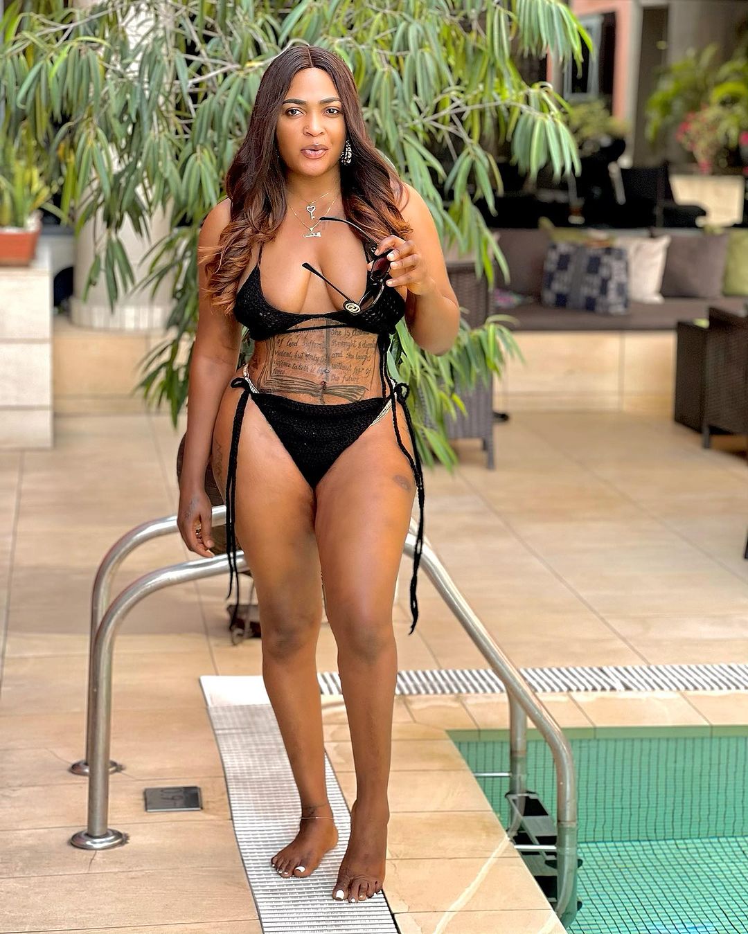 Blessing CEO had stirred reactions after flaunting her body in all of its glory as she wore a Bikini outfit which left little to the imagination.