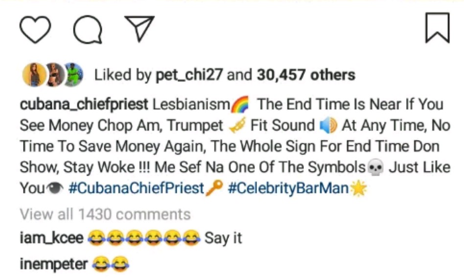 “The End Time Is Near, If You See Money Chop Am, Trumpet Fit Sound At Any Time”- Cubana Chiefpriest
