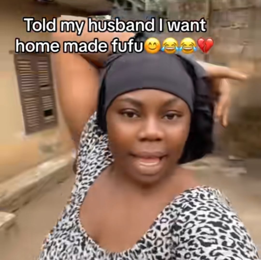 In the said video, captioned: ‘I told my husband I want handmade fufu,’ the lady was seen showing off her face and body, after which she showed her husband who was already pounding the fufu vigorously, sweating in the process.