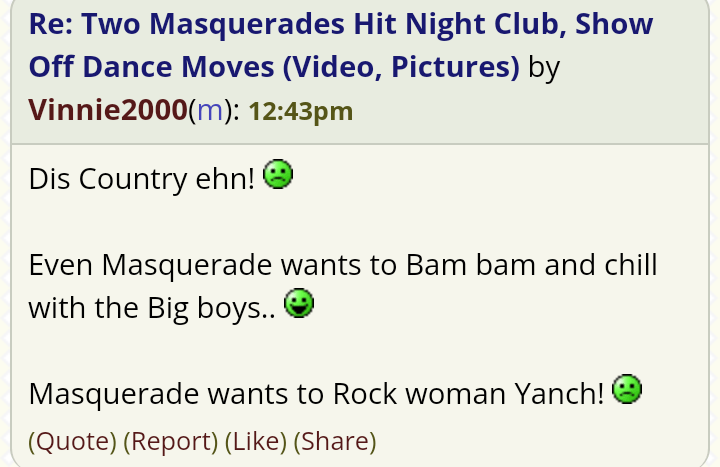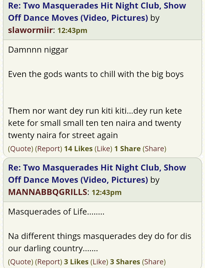 Be it as it may, netizens are still in awe over the awkward display of the masquerades who on a normal circumstance are mostly concerned with cultural activities, but in this case, it’s a different scenario altogether as they turned out to be nightlife kings.