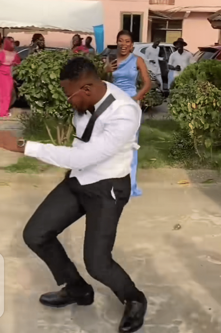 A video of an overly excited Nigerian groom showing off his crazy dance moves on his wedding day has gotten tongues wagging.