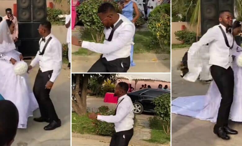 “The groom don take shayo” – Nigerian man leaves bride in shock as he dances crazily on wedding day (Video)