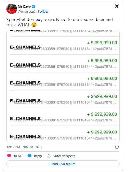 The saga began when Mr. Bayo initially shared his winning tickets on social media, showcasing separate victories of N60 million and N42.4 million.