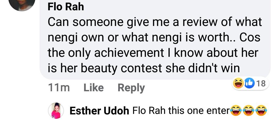 Reacting to this, Florah said the only thing Nengi has achieved is a beauty contest that she didn’t win.