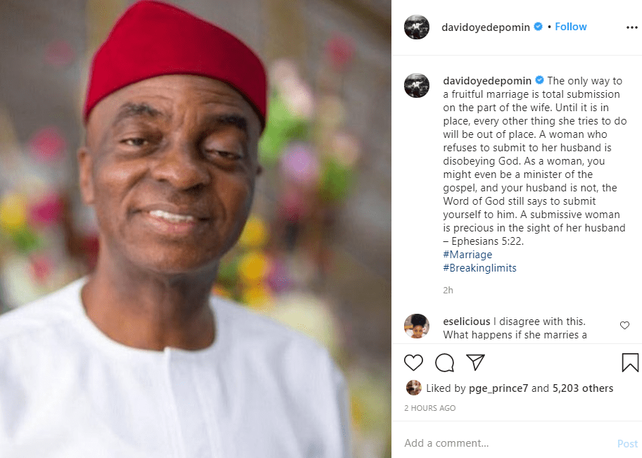 The only way to a fruitful marriage is total submission on the part of the wife — Bishop David Oyedepo