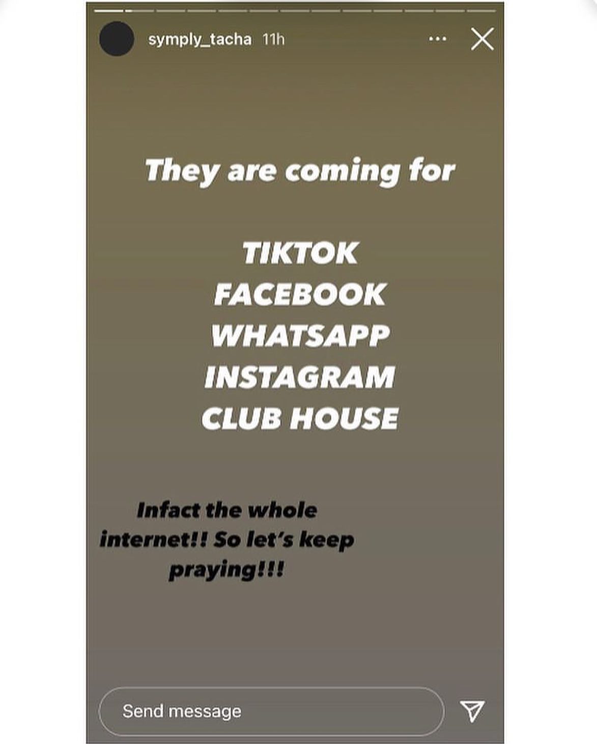 Tacha then urged Nigerians to start praying as the whole internet will soon be banned.