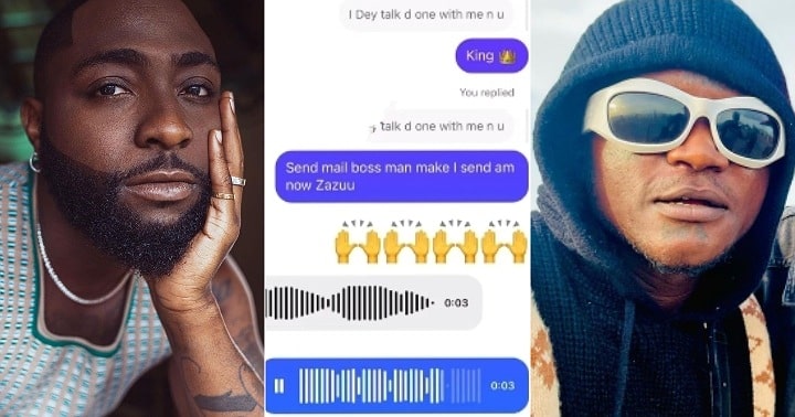 In the viral conversation, Davido sent a voice note hailing the Zazoo crooner who responded with rather inaudible slang.