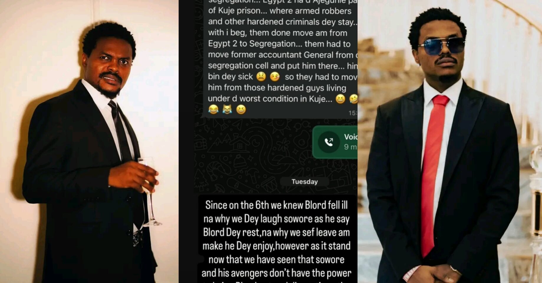Notable Nigerian entrepreneur, Blord has reportedly been transferred to another section within Kuje prison, with details about his health raising concerns online.