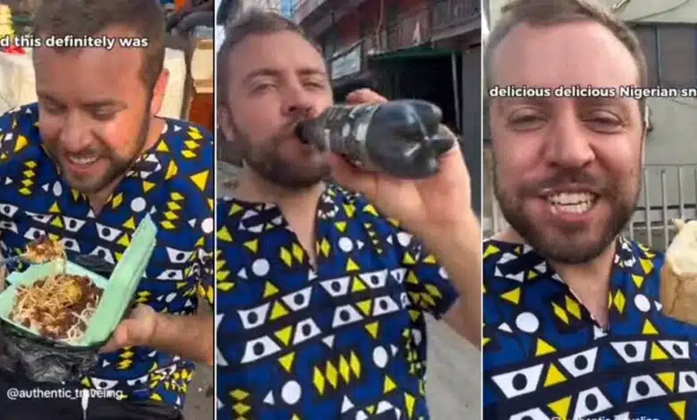 The oyinbo man identified as @authentic_traveling on TikTok took his audience on a culinary adventure through Oshodi, one of Lagos’s most renowned neighborhoods.