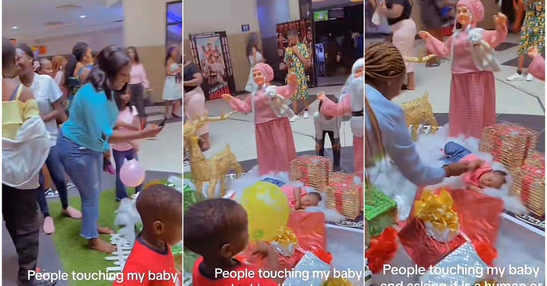 A mother has shared a video showing the moment people gathered around her child at a mall thinking she was a doll.
