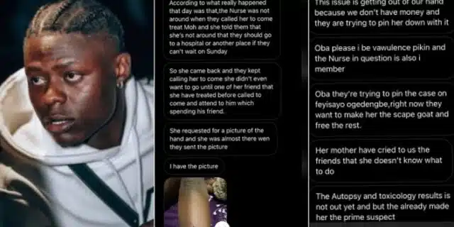 “They want to make her the scape goat” – Friend of nurse involved in Mohbad’s case cries out