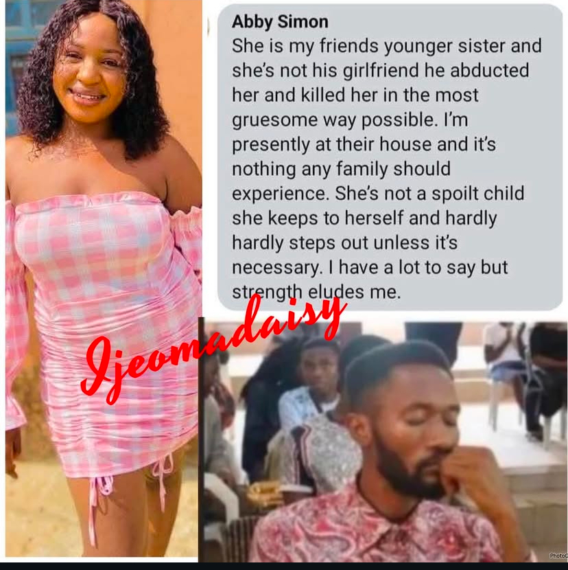 “She is my friends younger sister and she’s not his girlfriend he abducted her and killed her in the most gruesome way possible. I’m presently at their house and it’s nothing any family should experience. She’s not a spoilt child she keeps to herself and hardly hardly steps out unless it’s necessary. I have a lot to say but strength eludes me.”
