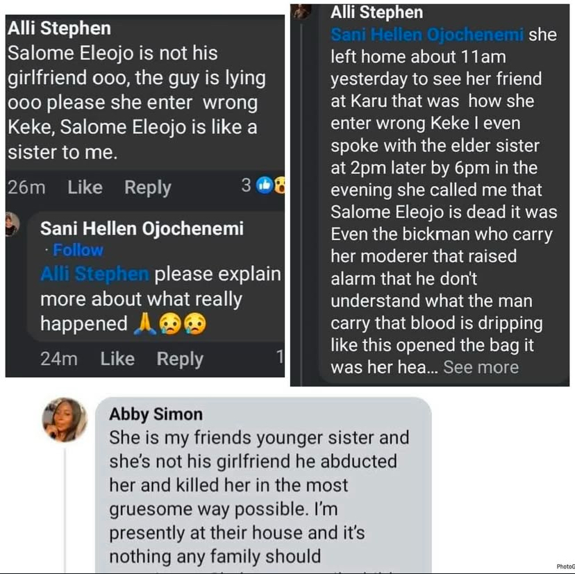 Another friend of the deceased, identified on Facebook as Alli Stephen, also took to his page and disclosed that Salome had left her home on Sunday, January 12, 2025, to visit a friend in Karu, Nasarawa state, but unfortunately entered the wrong tricycle.