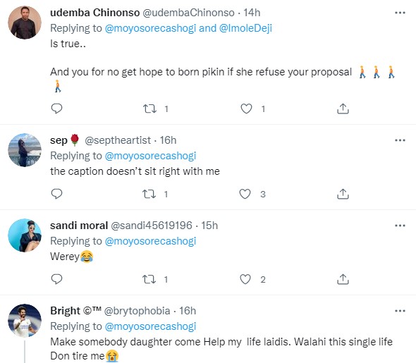 According to a Twitter user identified as @Moyosorecashogi takes to the platform to applaud his effort for saving his woman from singlehood.