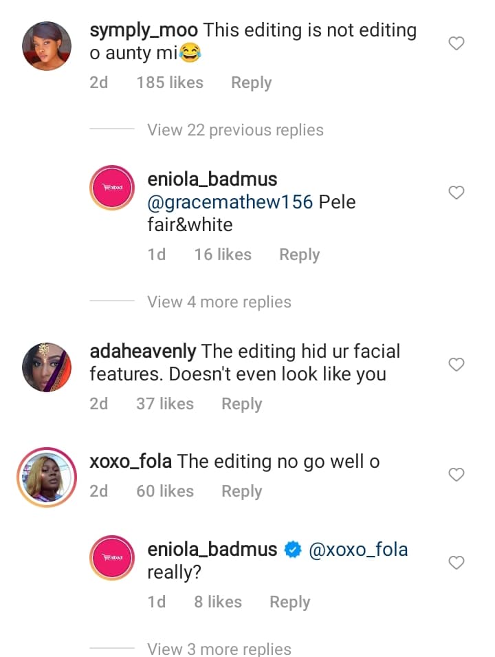 “This editing is not editing well” – Eniola Badmus and trolls trade words over her airbrushed photos