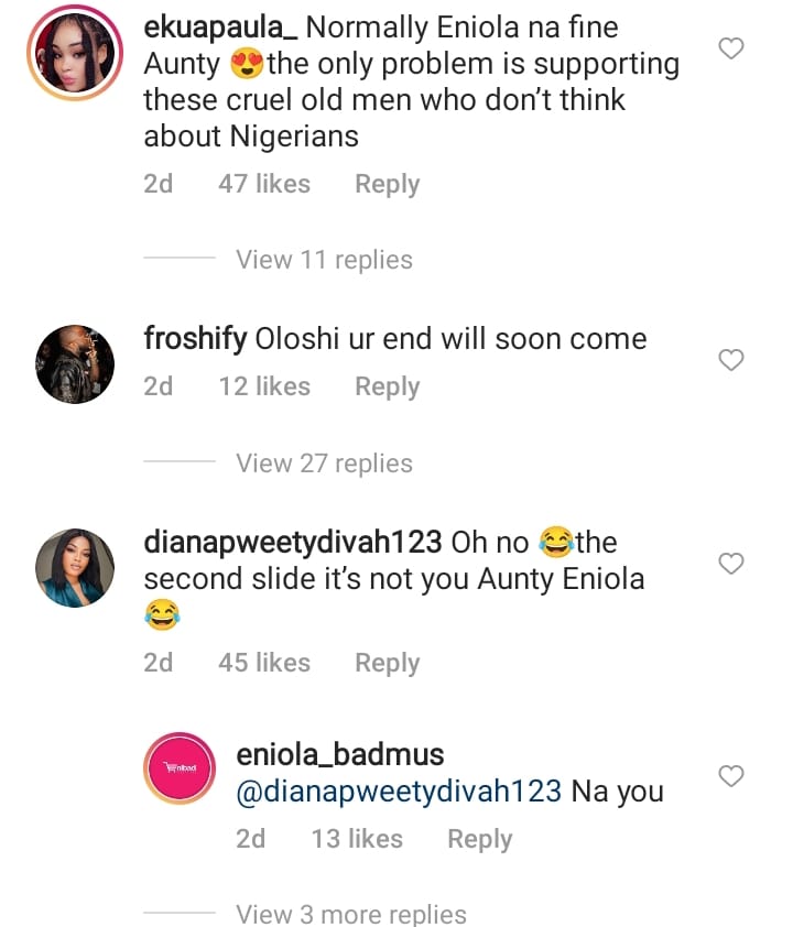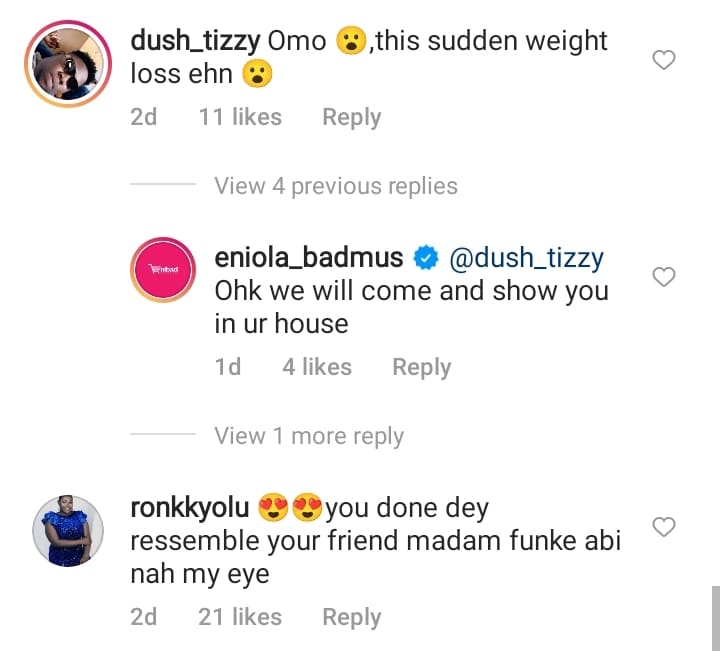 eniola_badmus reacted: “@gracemathew156 Pele fair&white”