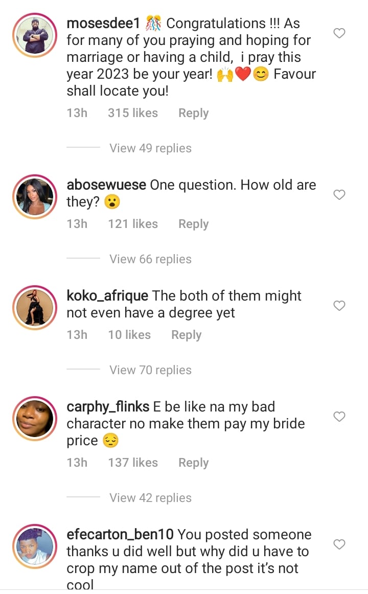mosesdee1 wrote; “🎊 Congratulations !!! As for many of you praying and hoping for marriage or having a child, i pray this year 2023 be your year! 🙌❤️😊 Favour shall locate you!”