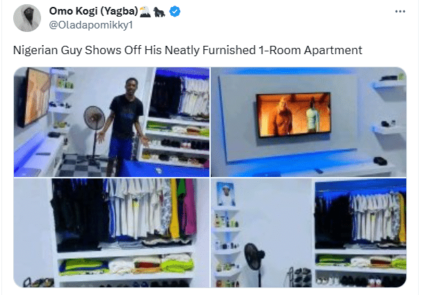 “This guy fit arrange the economy of Nigeria” – Young man flaunts neatly furnished one-room apartment