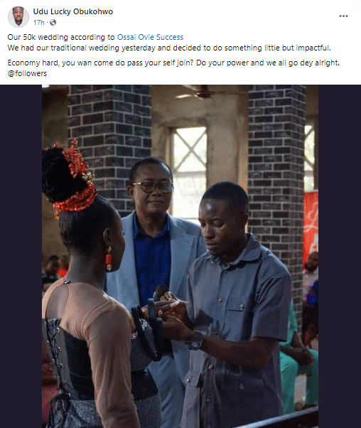 “Our 50k wedding according to Ossai Ovie Success.”